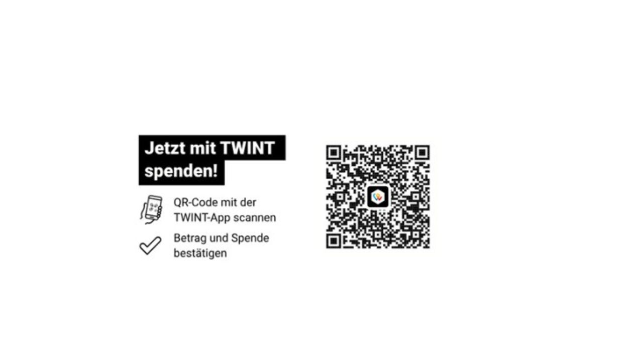 Sie können uns auch gerne über TWINT eine Spende zukommen lassen. Wir freuen uns über jeden Beitrag.